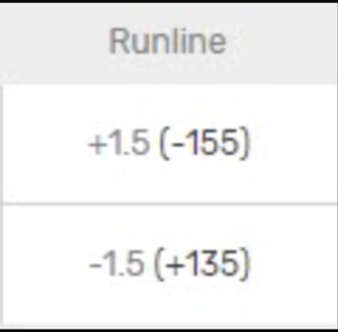 You probably already know the runline by its name in other sports betting contexts: the spread. That is, the runline is just the baseball betting version of the spread. It looks like this: