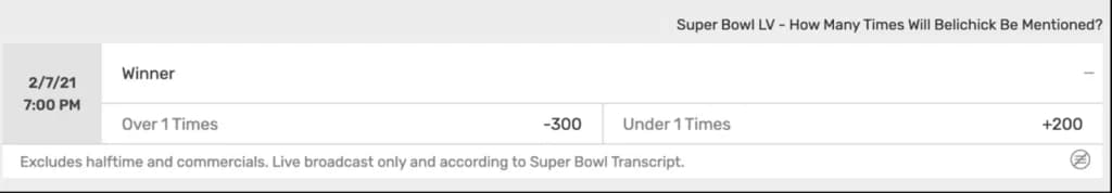 Another Super Bowl prop bet is whether Belichick will be mentioned more than once: