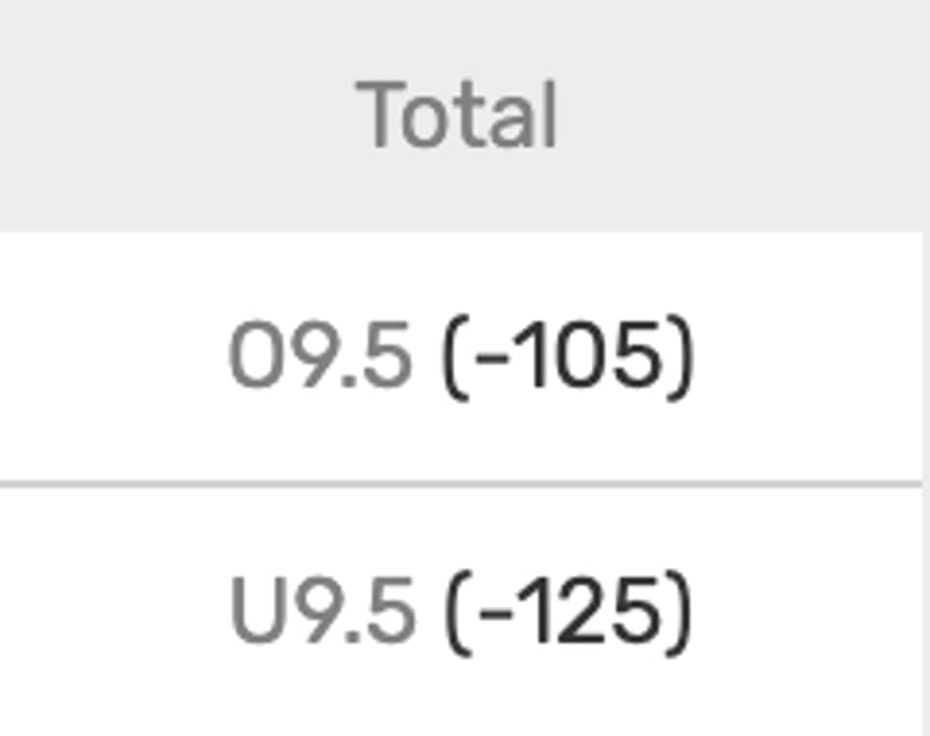 The total line is at 9.5 runs. If the final score in this game is 5-5, the over has won because it’s over 9.5 runs. If the score is 9 runs, the under has won. If the score is exactly 9.5 runs, the dude running the scoreboard needs to stop drinking Night Train during games.